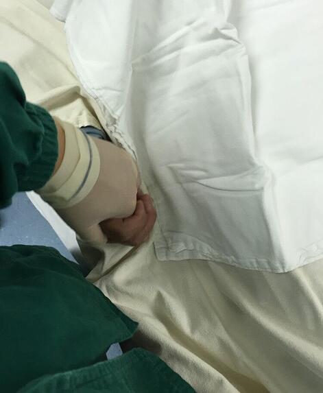 這時,手術(shù)護(hù)士李媛媛主動上前握住了張奶奶的手,萬分緊張而又深感無助的張奶奶像抓住了依靠。小李全程牽著張奶奶的手,張奶奶則緊緊的、用力的“捏著”小李的手,生怕會放掉一樣,這樣持續(xù)了將近一個小時。正是“握手”這個小小的舉動,平復(fù)了張奶奶的緊張情緒。各項手術(shù)工作也才有序開展。