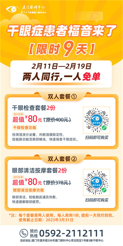 ① 2月11日-19日,80元可購2份原價(jià)400元的干眼綜合檢查;