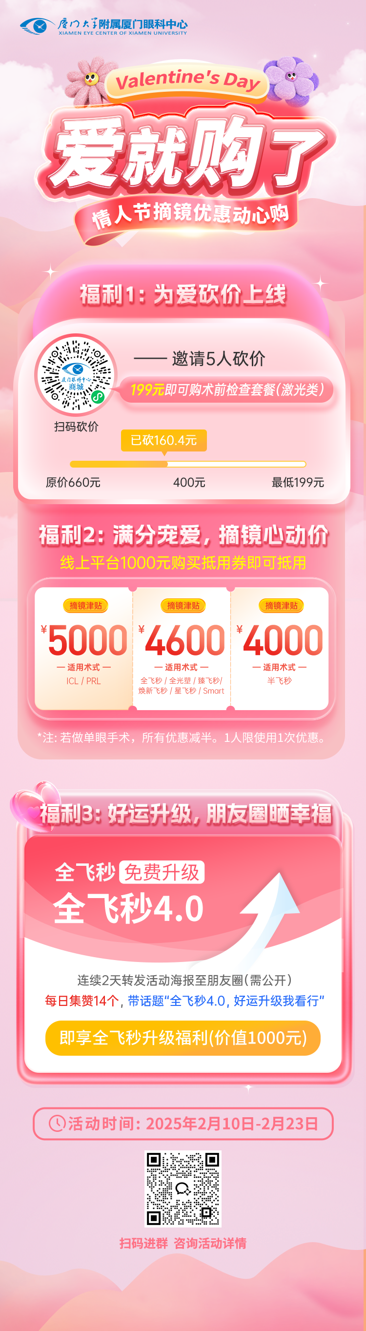 廈門(mén)眼科中心情人節(jié)近視手術(shù)3重福利,至高優(yōu)惠4461元