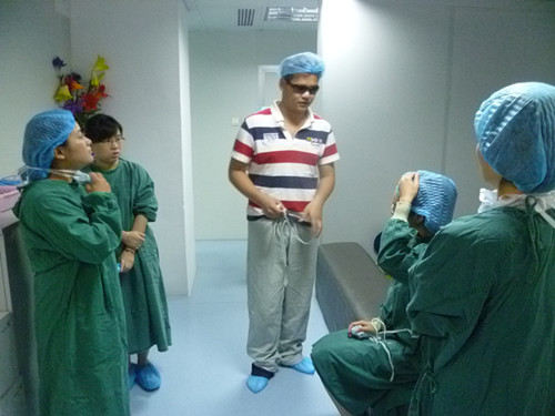 報(bào)名參加活動(dòng)的近視患者身著經(jīng)過消毒的手術(shù)服進(jìn)入手術(shù)參觀室,全過程、0距離觀摩,通過觀摩,對(duì)近視手術(shù)術(shù)前準(zhǔn)備、手術(shù)時(shí)間、手術(shù)過程等內(nèi)容有了更細(xì)致的了解。