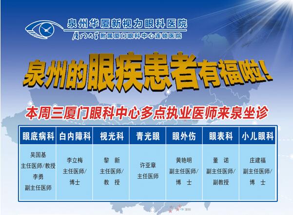 近日,廈門大學(xué)附屬廈門眼科中心(下稱廈門眼科中心)多名多點執(zhí)業(yè)醫(yī)師正式入駐泉州華廈新視力眼科醫(yī)院啦!3月16日(周三),他們將率先組團到泉州坐診!