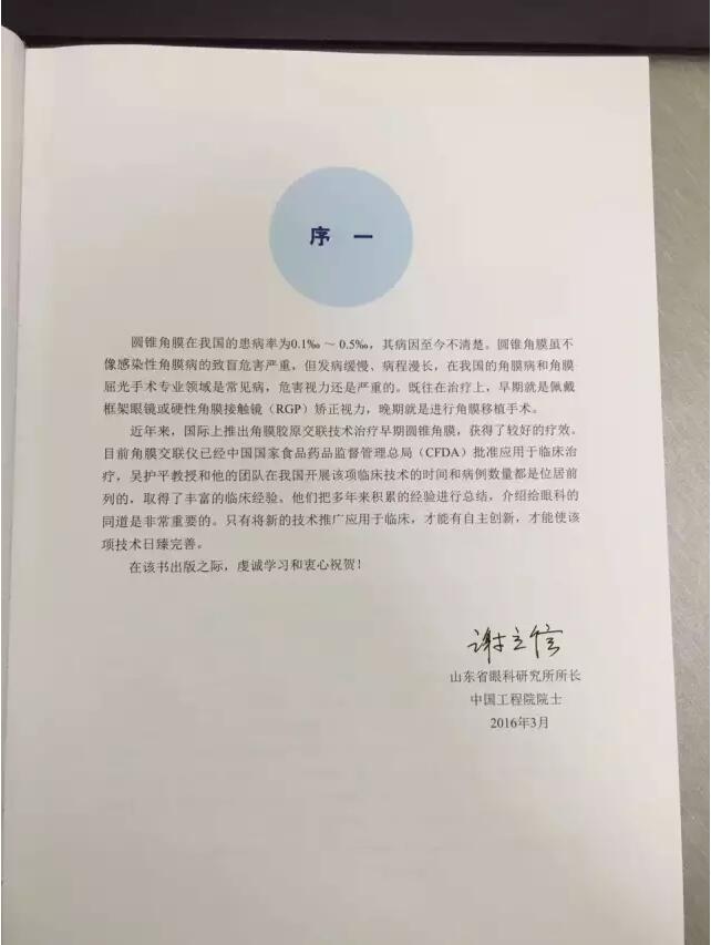 《角膜膠原交聯(lián)技術及臨床應用》一書的出版受到了眾多國際眼科名家的認可,并為此書寫了序言。