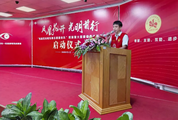 廈門市衛(wèi)生健康委員會機關(guān)黨委專職副書記、直屬黨委副書記王萍為廈門眼科中心“鳳凰花光明先鋒志愿服務(wù)隊”授旗,并宣布廈門眼科中心鳳凰花光明先鋒志愿服務(wù)隊正式成立。
