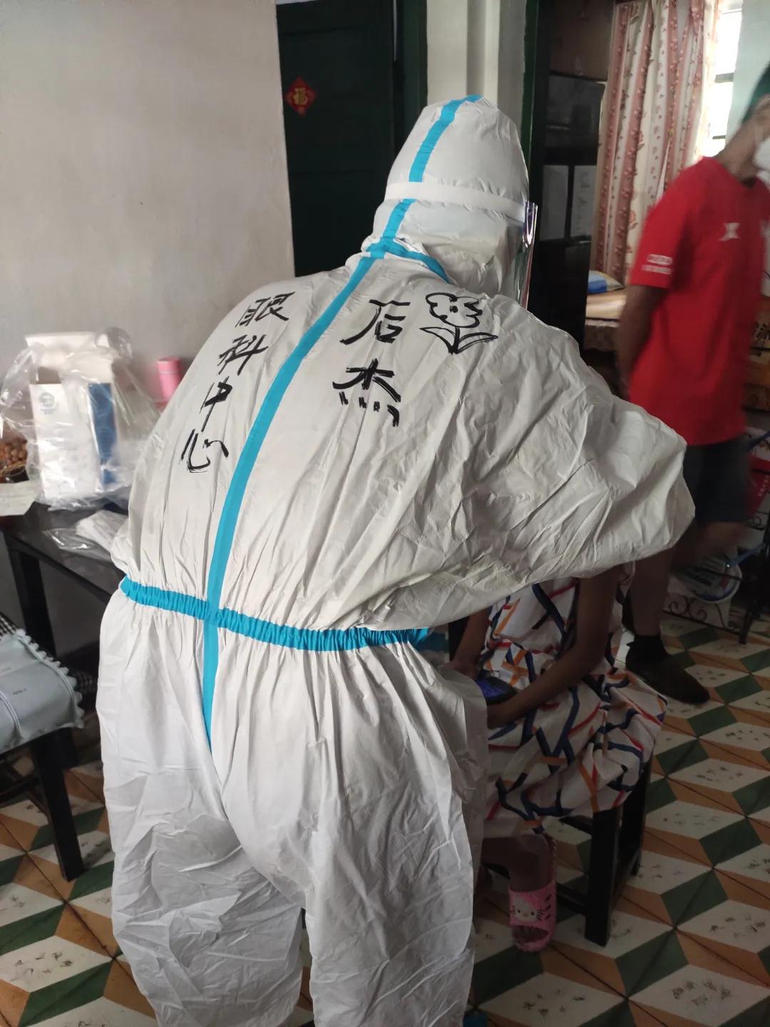 十多分鐘的路程,當(dāng)走到住戶家中時(shí),穿著防護(hù)服的后杰已全身濕透。雖然平??釔劢∩恚@段路程對(duì)他來說也略顯吃力。