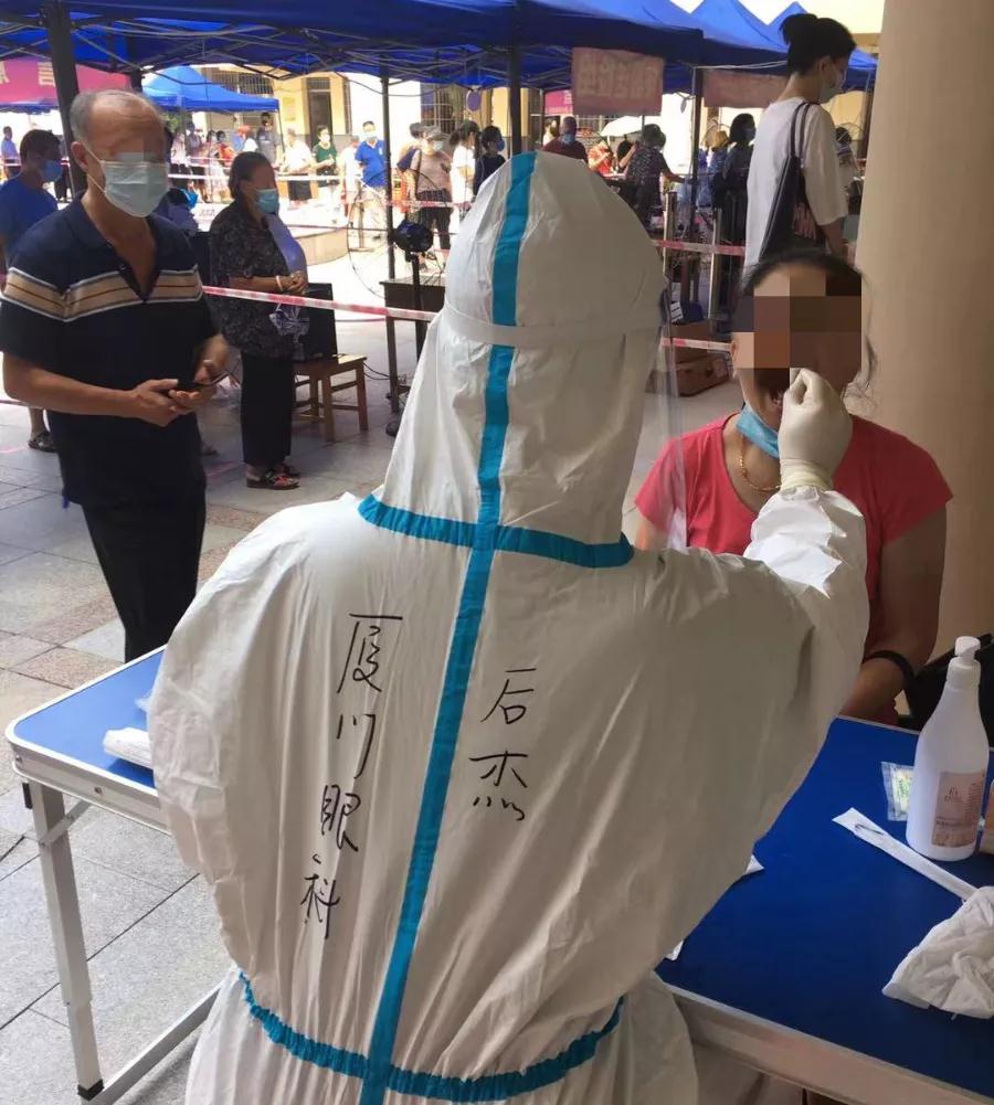 廈門市第三輪全員核酸檢測(cè)啟動(dòng)。依照部署,廈門眼科中心醫(yī)護(hù)人員奔赴各社區(qū)核酸檢測(cè)點(diǎn)支援。截止發(fā)稿,廈門眼科中心已派出403名醫(yī)護(hù)人員前往25個(gè)社區(qū),助力廈門市打贏疫情防控這場(chǎng)硬仗。作為支援前線的一員,22歲的男護(hù)士——后杰,主動(dòng)報(bào)名,“隨叫隨到”。