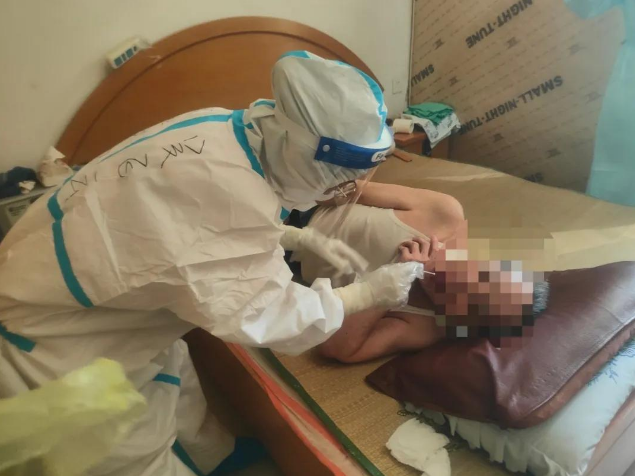 陽(yáng)臺(tái)山社區(qū)是在半山腰上,非常多的斜坡要爬,穿著防護(hù)服的我們,走路都會(huì)喘不過(guò)氣,但我們還要爬樓,嚴(yán)重供氧不足,是我們想象之外的難受。每一戶(hù)都不是在同一棟,這讓我們的體力消耗很快。