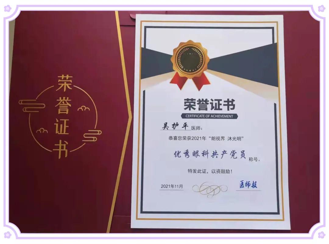 近期,由《醫(yī)師報(bào)》社主辦、眼播和康弘生物科技有限公司共同承辦的“奮斗百年路,照亮人文光”——“朗視界 沐光明”2021年眼科醫(yī)生推選名單揭曉,他從全國(guó)4萬名眼科醫(yī)生中脫穎而出,獲評(píng)“優(yōu)秀眼科共產(chǎn)黨員”。