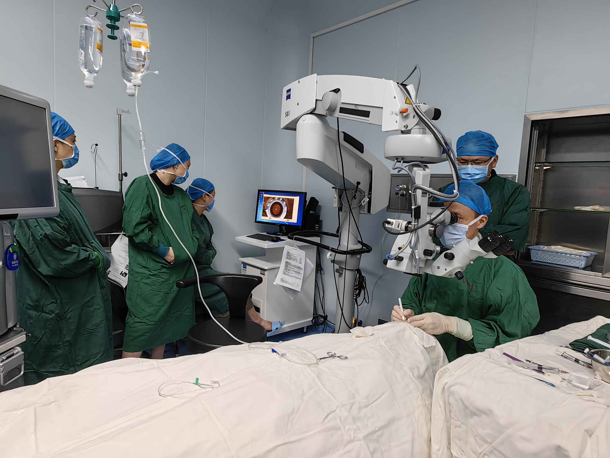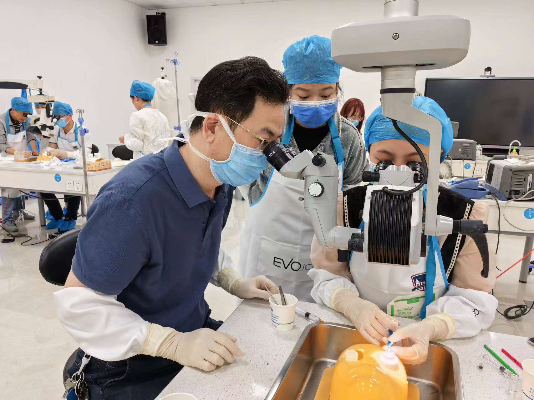 手術(shù)觀摩環(huán)節(jié),劉才遠(yuǎn)教授、鄭林主任對(duì)學(xué)員們進(jìn)行一對(duì)一手術(shù)技巧的帶教操作指導(dǎo)。他們不僅是國(guó)內(nèi)為數(shù)不多ICL手術(shù)經(jīng)驗(yàn)豐富的專(zhuān)家,還是各地ICL手術(shù)醫(yī)生的帶教、培養(yǎng)及考核導(dǎo)師。
