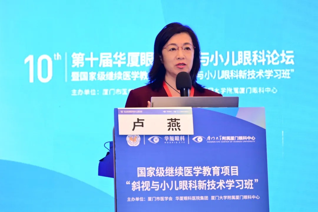 ▲ 盧燕教授分享《斜視伴近視驗(yàn)配角膜塑形鏡需要注意的相關(guān)問(wèn)題》