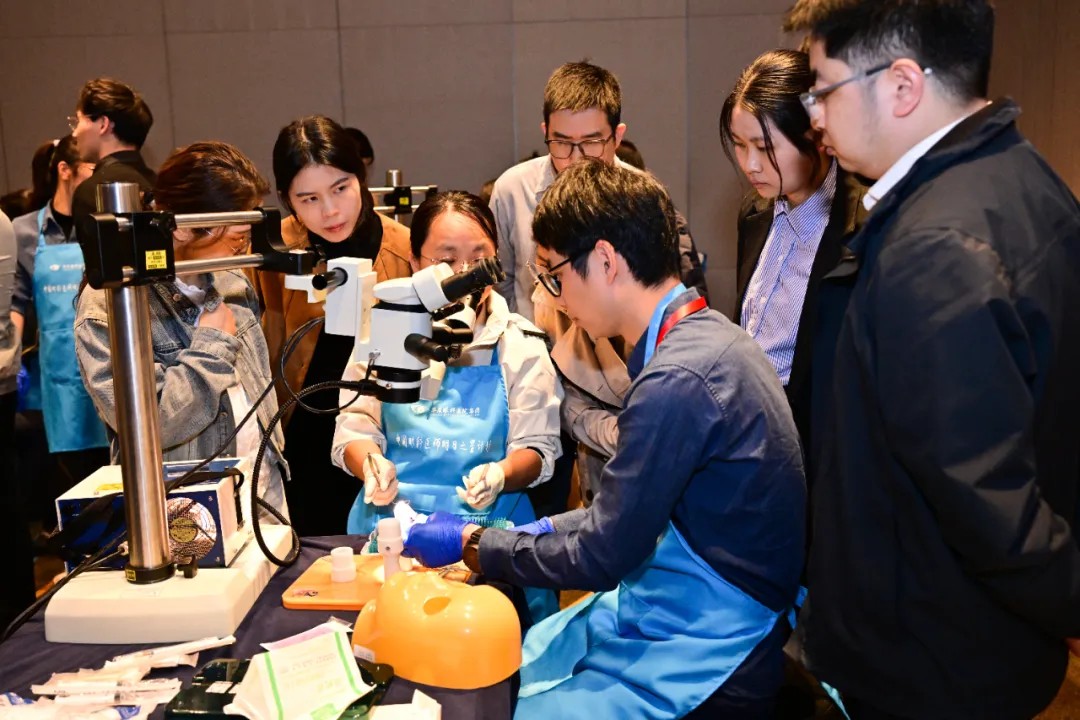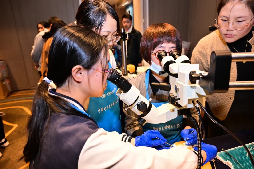 除學(xué)術(shù)環(huán)節(jié)外,本次論壇特別開(kāi)設(shè)了斜視手術(shù)Wetlab實(shí)操培訓(xùn)專(zhuān)場(chǎng)及手術(shù)錄像展播。廈門(mén)眼科中心斜視與小兒眼科的主任醫(yī)師謝仁藝,副主任醫(yī)師楊梅、何歡、王海燕為學(xué)員們一對(duì)一講解了斜視手術(shù)的操作要點(diǎn)、技巧,手把手指導(dǎo)學(xué)員在動(dòng)物眼上實(shí)操,大大提升了學(xué)員們的斜視手術(shù)技能。