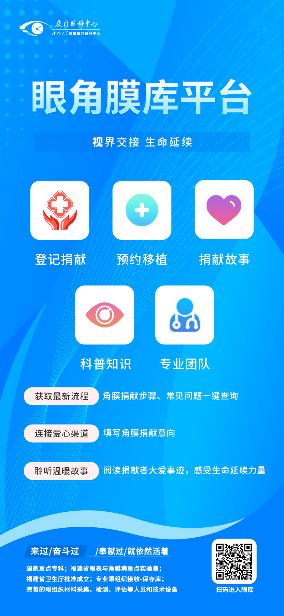 廈門眼科中心眼庫平臺,能快速獲取角膜移植與角膜捐獻相關內(nèi)容。在這里,您可以: