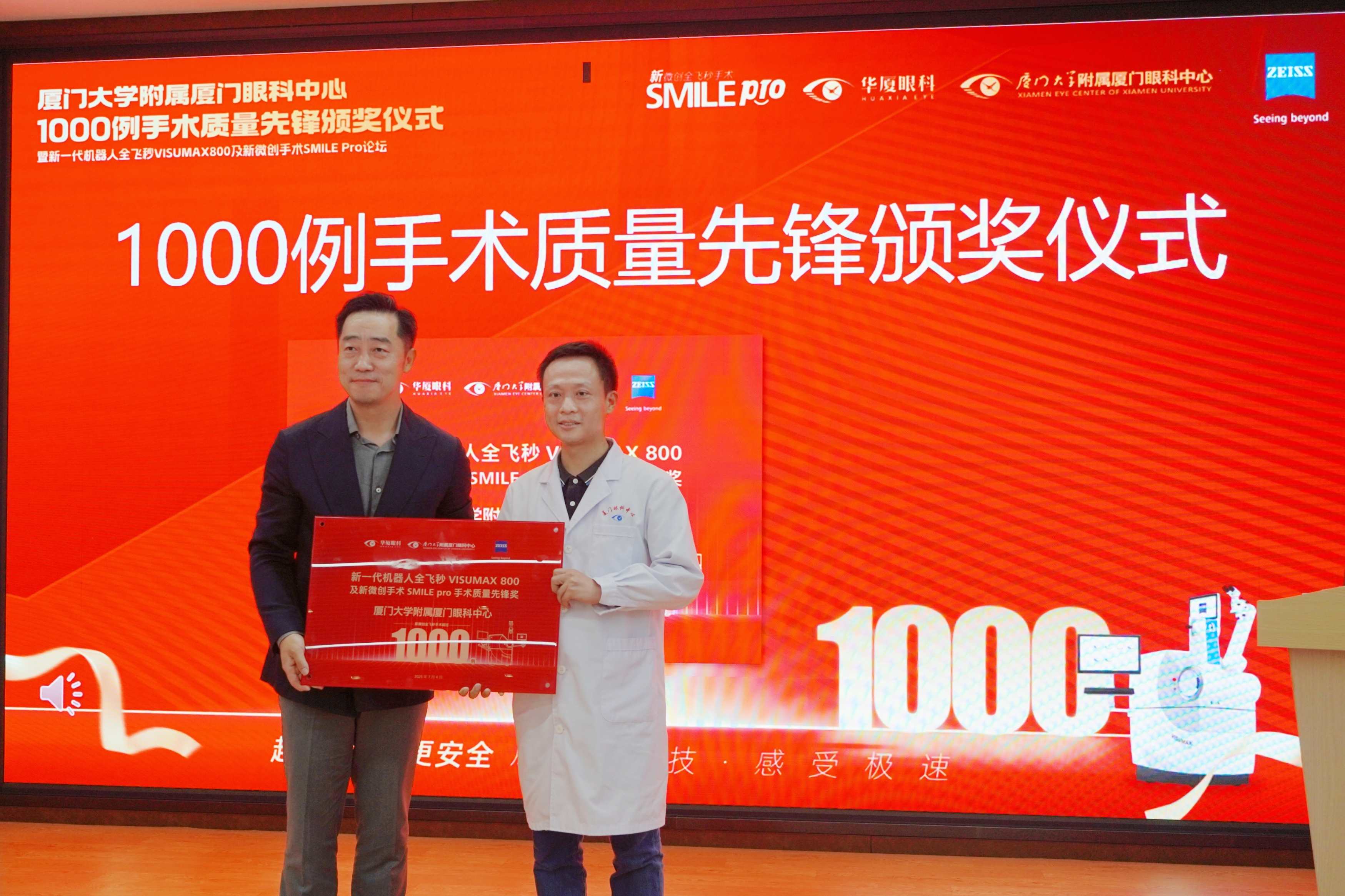 會(huì)議核心環(huán)節(jié),蔡司總部授予廈門眼科中心“SMILE Pro 1000例手術(shù)質(zhì)量先鋒獎(jiǎng)”,‌這一殊榮是對(duì)廈門眼科中心在全飛秒SMILE Pro手術(shù)領(lǐng)域卓越成就的高度認(rèn)可。