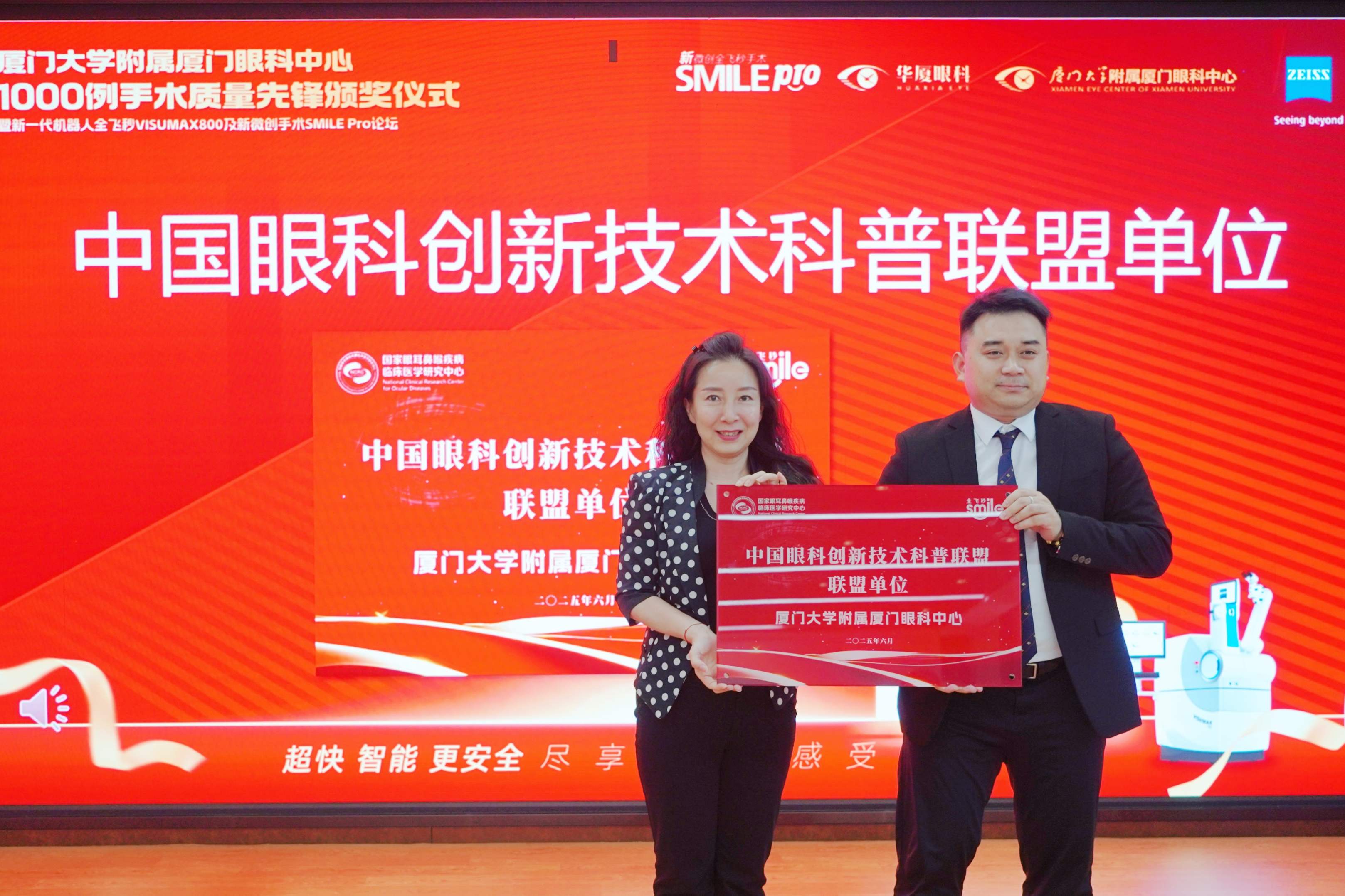 同期,廈門眼科中心獲頒“中國眼科創(chuàng)新技術(shù)科普聯(lián)盟單位”稱號(hào)。