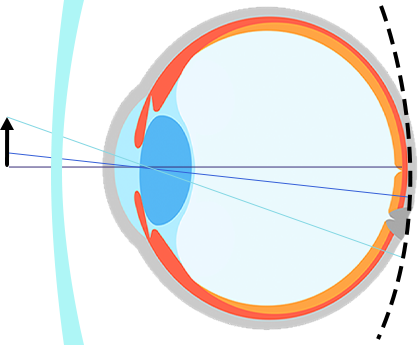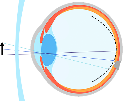 周邊離焦鏡片通過將投射在視網(wǎng)膜后面周邊的焦點,移到視網(wǎng)膜上或視網(wǎng)膜前方,我們稱之為聚焦或周邊近視性離焦: