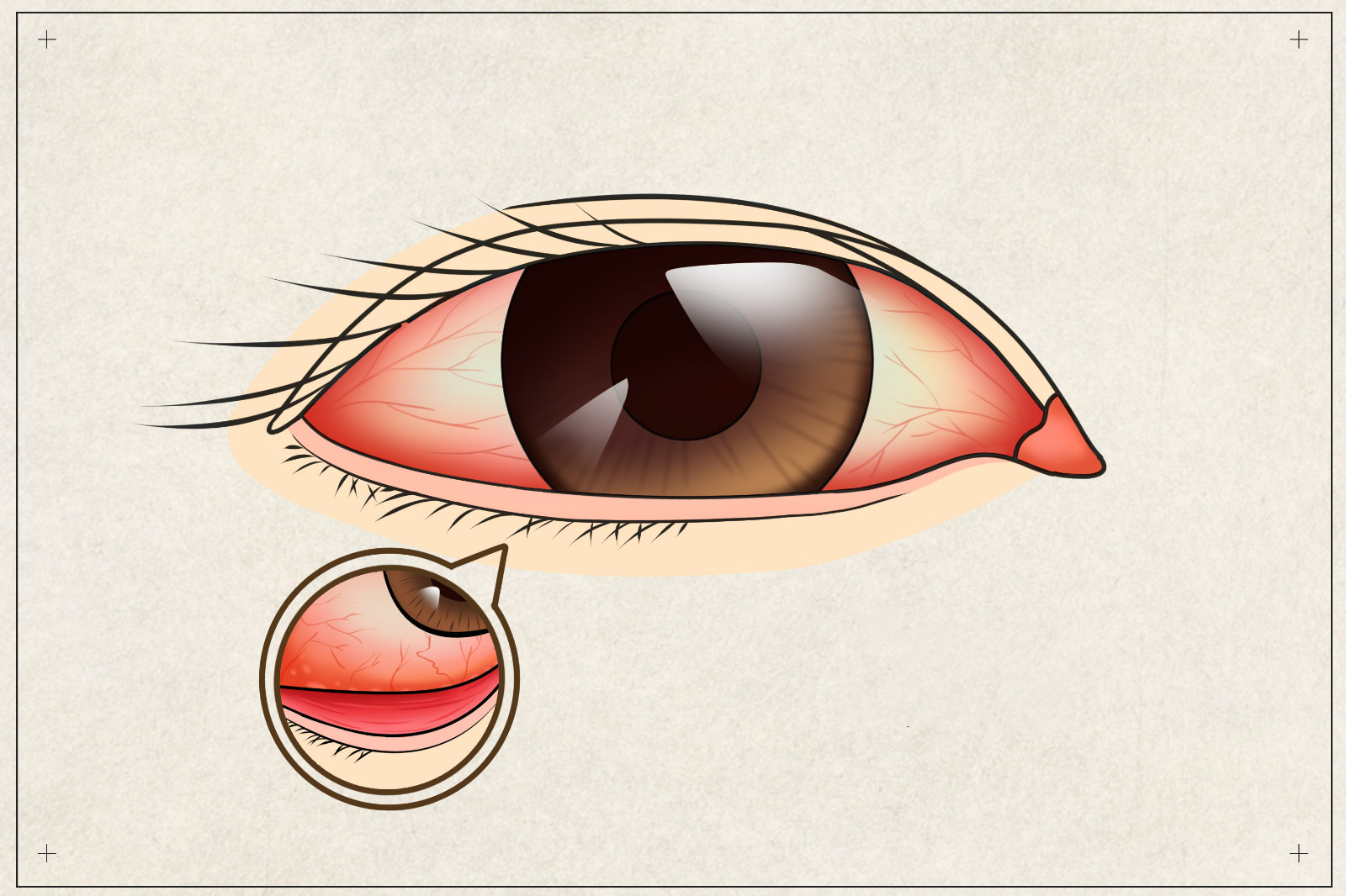 紅血絲,就是在我們眼球眼白的位置會看到一些細血絲,嚴重時整個眼睛呈發(fā)紅狀。
