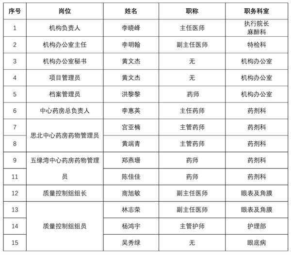 廈門(mén)大學(xué)附屬?gòu)B門(mén)眼科中心藥物臨床試驗(yàn)機(jī)構(gòu)成員名單